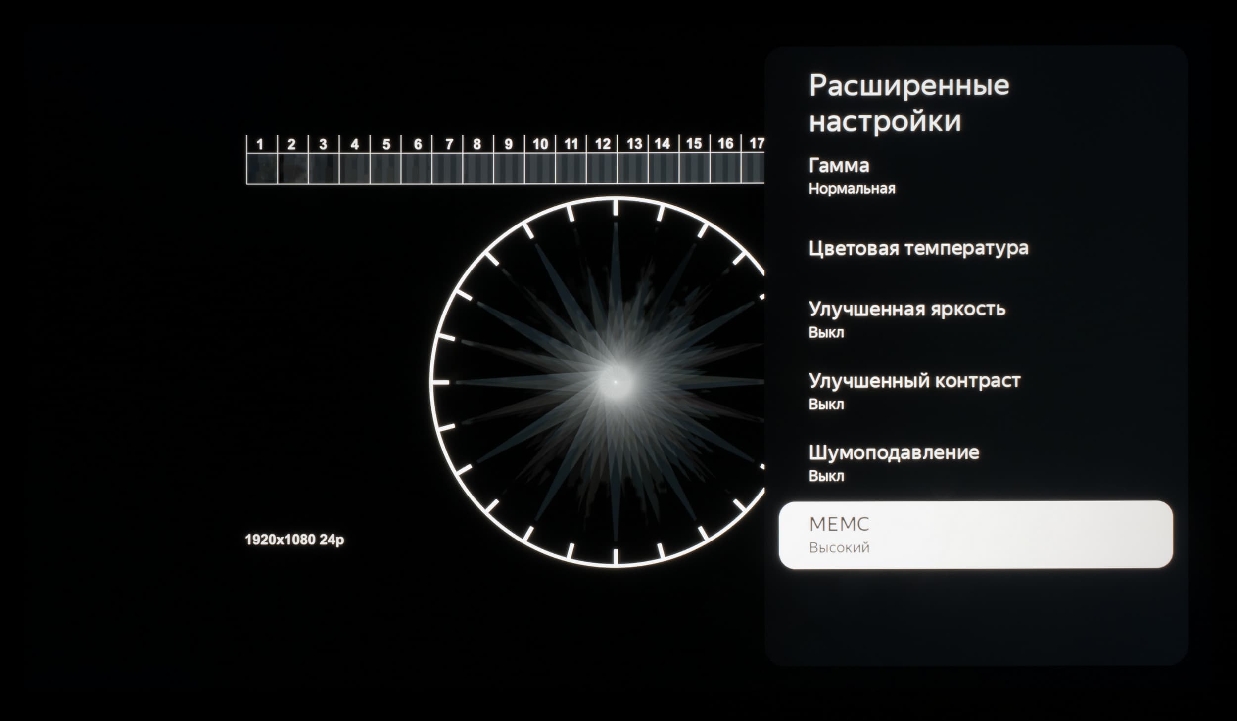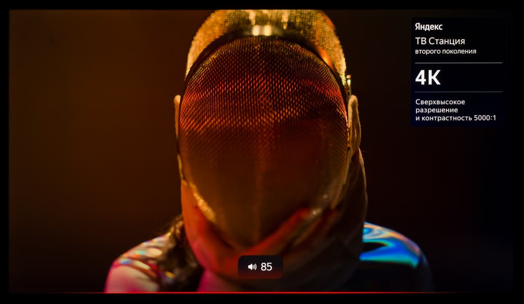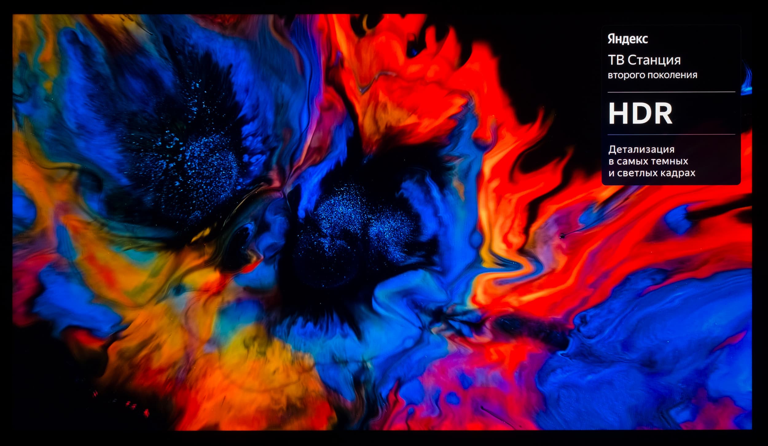 При этом классический Glow-эффект, свойственный IPS-моделям, у телевизора «Яндекс ТВ Станция» на *VA-матрице выражен исключительно при близком расположении пользователя к экрану и проявляются визуальным снижением глубины черного по краям панели, без появления дополнительных паразитных оттенков. Явление вполне обычное и, в некоторой степени, относится к более низкой стабильности картинки, чем у IPS-конкурентов.