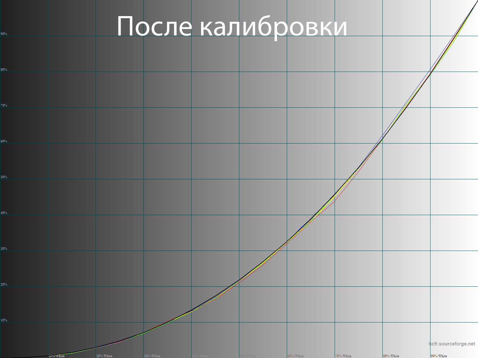 После такой настройки мы получили правильный баланс RGB, более высокое соответствие гаммы необходимому референсу и адекватную насыщенность во всем диапазоне. Все остальные коррекции были выполнены с помощью соответствующих правок сигнала видеокарты через ее собственный LUT.