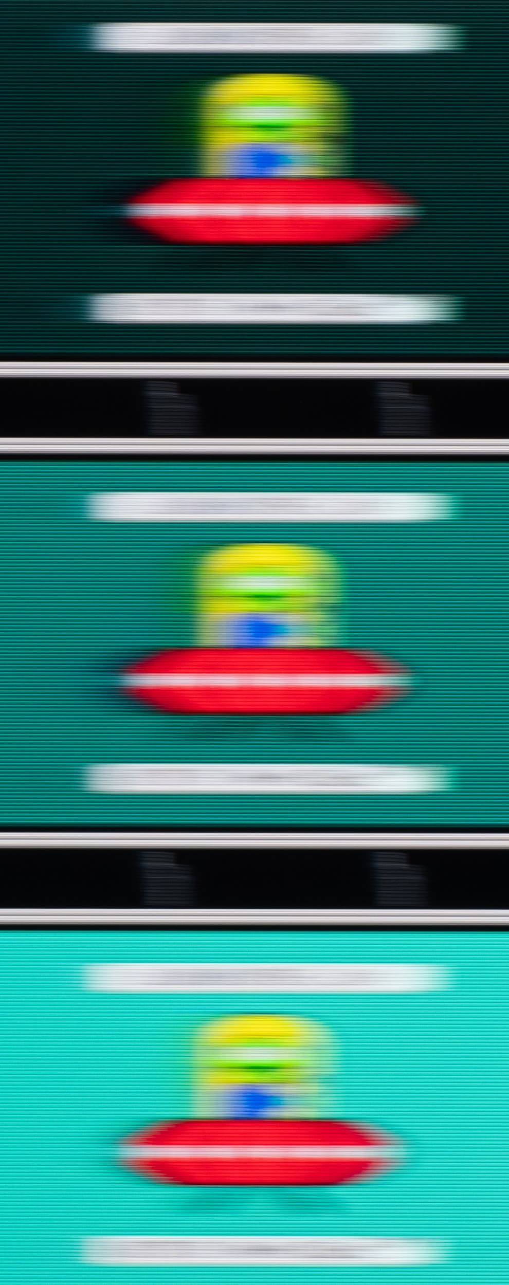 В ходе нашего тестирования фактическое время отклика при переходе черный-белый-черный (BtW-WtB) составило 20,6 мс (15,4 мс вкл. + 5,2 мс выкл.). Переходы между полутонами (GtG) происходят в среднем за 6,8 мс. Но для получения этих результатов производителем применен средний «разгон» матрицы, приводящий к некоторым артефактам.