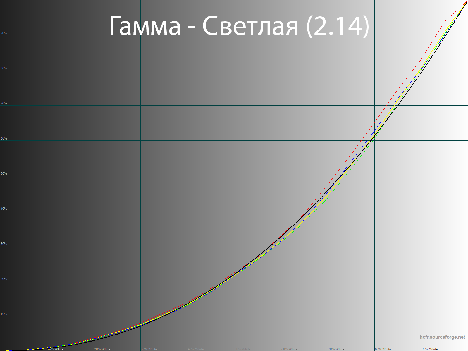 Самое же точное изображение предлагает режим «Светлая» — по умолчанию, без прочих правок, он предложил среднее значение гаммы в 2,14, что близко к желаемому уровню. Смело используйте.