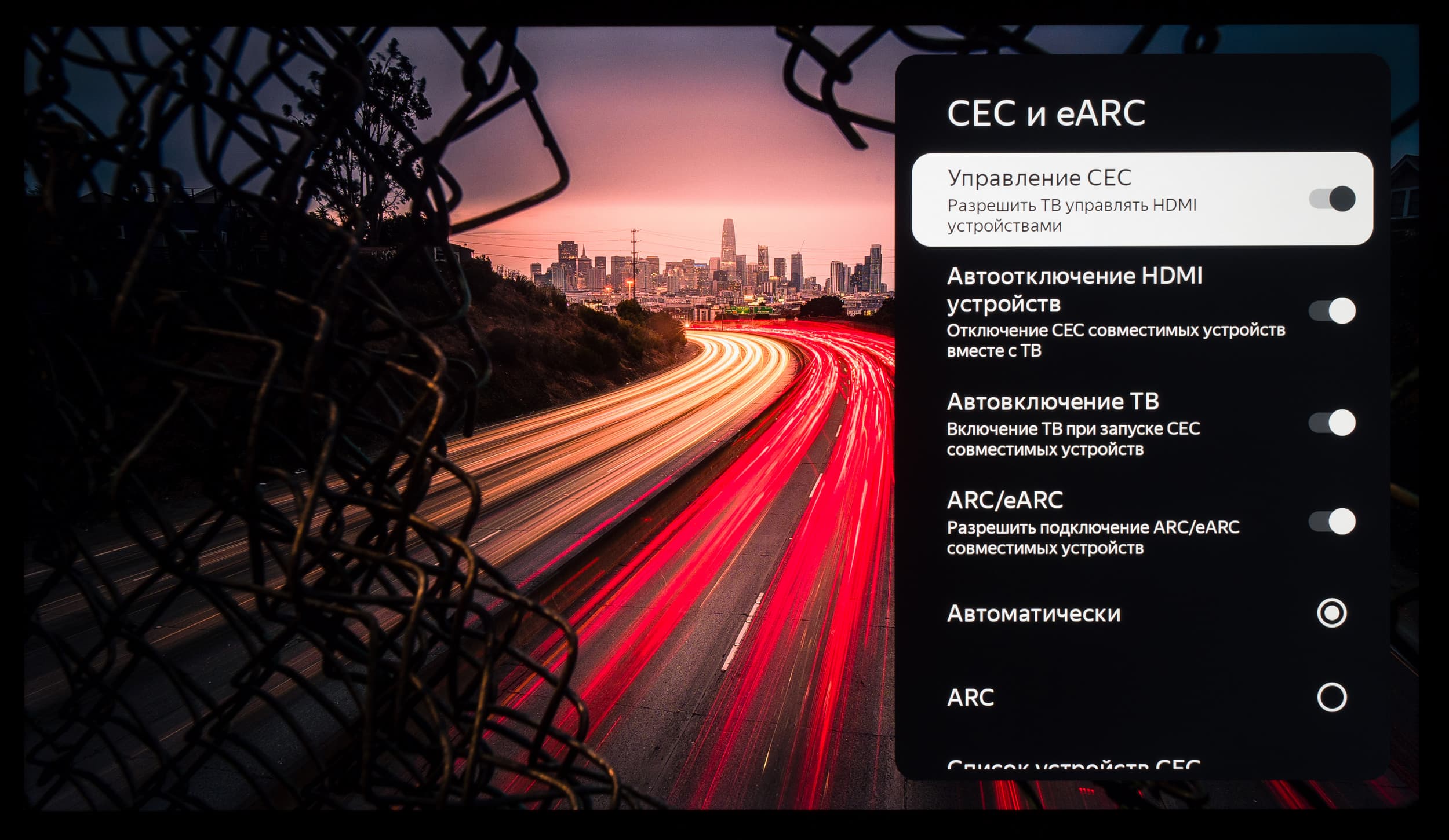 У телевизора есть поддержка управления по HDMI — функция HDMI CEC. В нашем случае она прекрасно работала с ТВ-приставкой Xiaomi Mi Box S и ее стандартным пультом ДУ. Можно и, наоборот, пультом ТВ активировать, настраивать и выключать саму приставку.