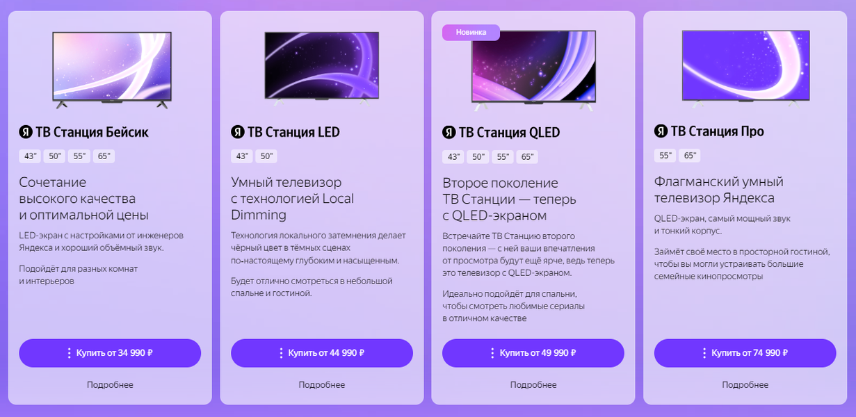 Расширение линейки телевизоров компании «Яндекс» произошло за счет более скромной модели, чем «ТВ Станция Про», но более интересной и актуальной, чем «ТВ Станция Бейсик». Ранее между ними была только серия «ТВ Станция LED», но на фоне успехов в продвижении расширенного цветового охвата и HDR-контента в массы, а также доступного ассортимента телевизоров с продвинутыми схемами подсветки у конкурентов решено было сделать шаг навстречу QLED. Так и зародилось название для героя этого материала.