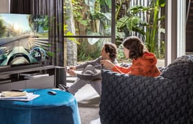 21 сен 2020 19:00 46 Телевизор Samsung 43” Crystal UHD 4K Smart TV TU8000 Series 8: диагональ 43 дюйма, визуально безрамочный дизайн, разрешение 4K, поддержка HDR Несмотря на относительно невысокую цену и в целом бюджетное исполнение, телевизор Samsung UE43TU8000UXRU отличается современным визуально безрамочным дизайном, а в комплекте к нему идет гибридный пульт ДУ со встроенным микрофоном, соответственно поддерживается голосовой поиск и голосовое управление, хотя к последнему у нас есть обоснованные претензии. В остальном этот телевизор является типичным представителем современных недорогих «умных» телевизоров с разрешением 4К и с номинальной поддержкой HDR (номинальной — поскольку максимальная яркость невысокая и цветовой охват практически не превышает sRGB). К положительным моментам отнесем быстрый Wi-Fi, возможность управлять сторонней техникой с пульта, хорошую для этого класса встроенную акустическую систему и хорошее качество цветопередачи. Использовать для игр этот телевизор не возбраняется, так как время отклика и задержка вывода невысокие. Также этот телевизор можно применять в качестве большого монитора для работы за ПК, поскольку на максимальной яркости (она не чрезмерно высокая) мерцания нет, а вывод в режиме 60 кадр/с может быть 1:1 по пикселям и без потери яркостной и цветовой четкости.