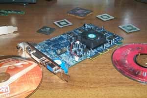 А в тех самых коробках, фотографии которых вы видели, кроме самих карт можно найти диск с ПО (драйверы от ATI), листовку-памятку по установке карты и S-Video-удлинитель.