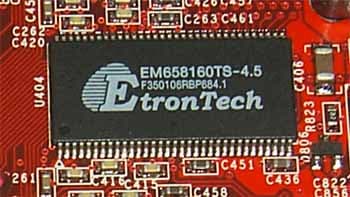 | Память производства EtronTech, время выборки 4.5ns. Частота работы видеокарты 175/200 (400) МГц. | ![]() |