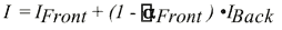 где, IBack — интенсивность цветовых составляющих нижнего объекта (В); IFront - интенсивность цветовых составляющих объекта находящегося выше (А) с учетом значения собственного альфа (aFront); выражение (1-aFront) — переходной коэффициент прозрачности между слоями.