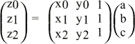 Линейная зависимость между тремя точками (x0, y0, z0), (x1, y1, z1), (x2, y2 ,z2) и приведенным выше уравнением следующая:
