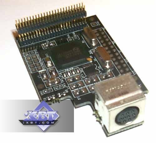 Как мы видим, на этой "дочке" установлено одно общее гнездо для подключения разветвителя-переходника, который поставляется вместе с картой. Разветвитель имеет как S-Video разъемы, так и RCA, поэтому владельцы любой видеотехники смогут воспользоваться мультимедийными функциями этой карты.