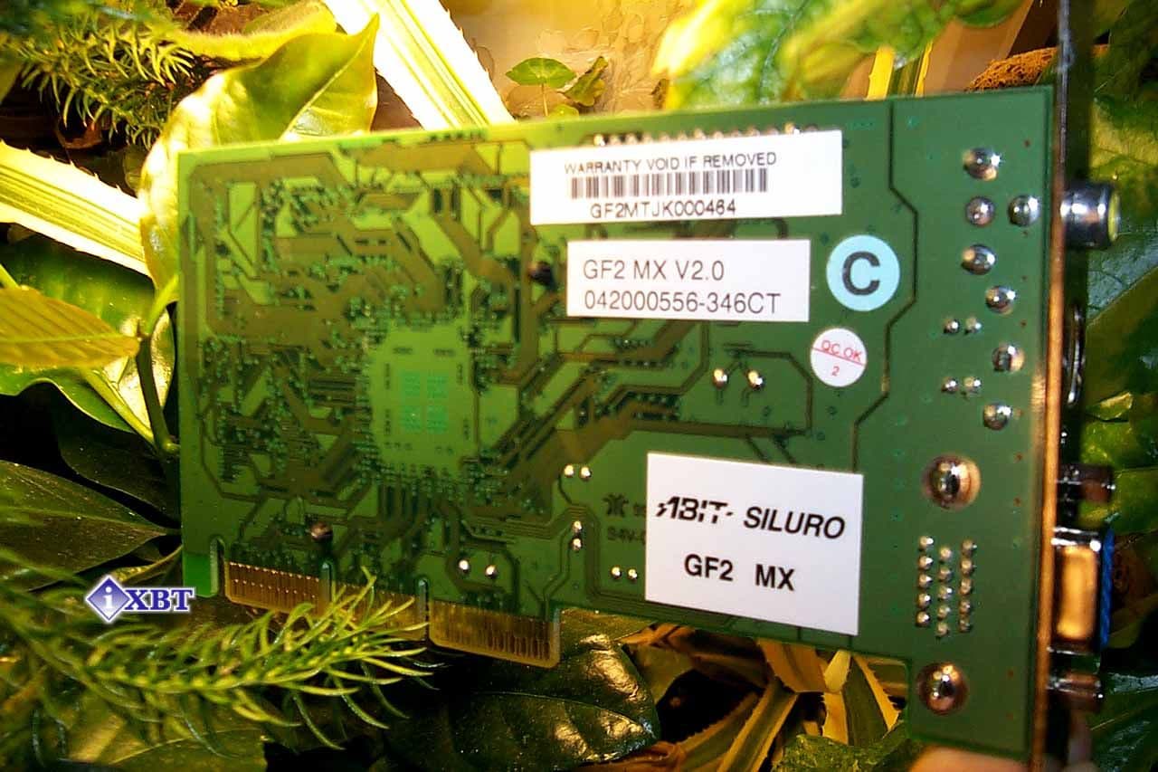 Анализируя внешний вид ABIT Siluro GF2 MX, нетрудно заметить, что о повторении эталонного дизайна от NVIDIA в данном случае речи не идет. То есть, если подобные карты будут появляться в продаже и в ОЕМ-поставках, то не надо пугаться внешнего вида этих плат, не похожего на многие аналоги на базе GeForce2 MX. PCB у ABIT Siluro GF2 MX зеленого цвета, на ней смонтирован TV-out, причем имеются два разъема: S-Video и RCA, что весьма похвально с точки зрения многочисленных российских пользователей, не у каждого из которых есть видеотехника с S-Video-входом. На чипе установлен ничем не примечательный и вполне традиционный активный кулер.