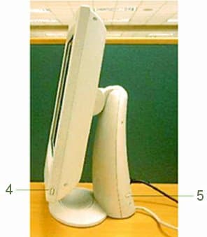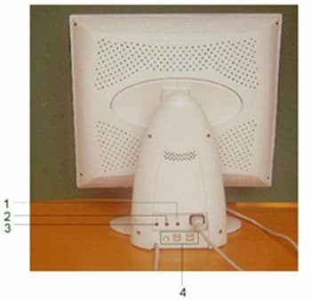 На задней стороне стойки монитора расположено колесико (5) регулировки громкости встроенных колонок, которые находятся в самом низу стойки, у подставки, и расположены очень близко друг от друга.