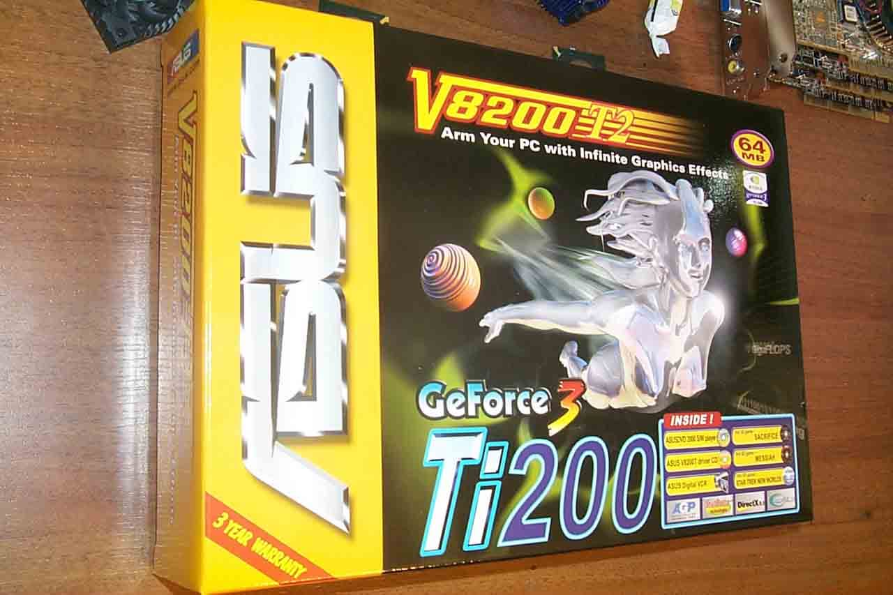 Карта ASUS AGP-V8200T2 базируется на NVIDIA GeForce3 Ti 200, имеет AGP x2/x4 интерфейс, 64 МБ DDR SDRAM памяти, размещенной в 8-ми микросхемах на лицевой стороне PCB.