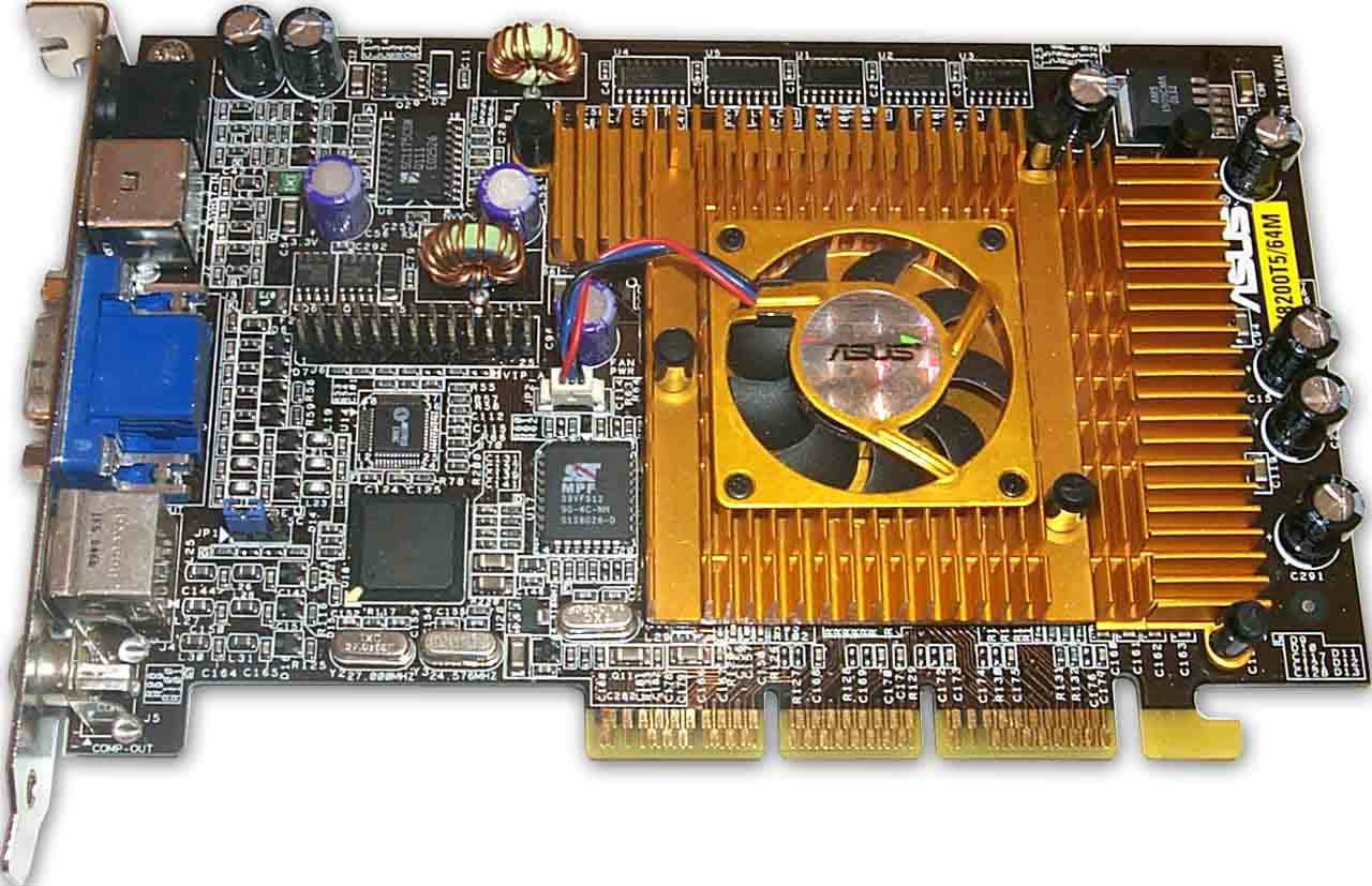 - ASUS AGP-V8200T2 (GeForce3 Ti 200, 64 МБ DDR, 175/200 (400) МГц);