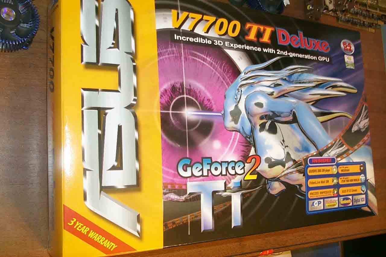 - ASUS AGP-V7700TI Deluxe (GeForce2 Ti, 64 МБ DDR, 250/200 (400) МГц, TV-in/out, 3D-стереоочки);