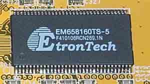 Конечно, этот факт малоприятен тем, кто любит карты разгонять, однако мы все помним, что, во-первых, 4-нс память почти всегда давала возможность разгонять ее уж до штатных 250 МГц точно, а то и выше; во-вторых, марка EtronTech достаточно популярна среди любителей разгона 3D-акселераторов из-за достаточно высокого разгонного потенциала, сравнимого с EliteMT (ESMT).