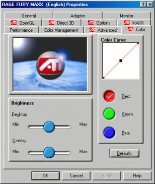 В этой панели можно отключить один из двух чипов ATI RAGE 128 PRO, превратив тем самым ATI RAGE FURY MAXX в обычную карту ATI RAGE FURY PRO: