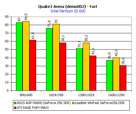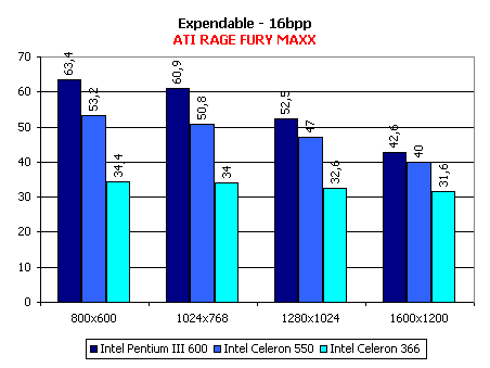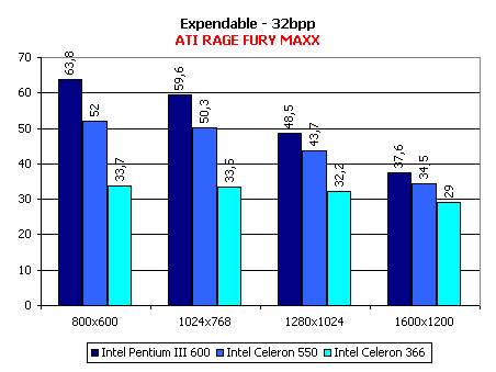 На примере этой игры мы также посмотрели зависимость производительности ATI RAGE FURY MAXX от производительности разных центральных процессоров: