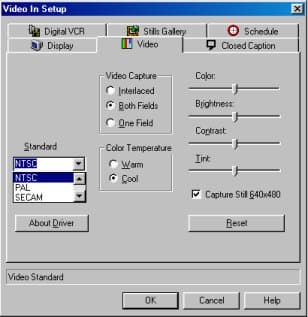 Для работы этой функции требуется установить ATI MMC, в том числе утилиту Video In, которая позволяет принимать PAL/SECAM или NTSC сигнал. У этой программы есть свое меню установок, в число которых входят: