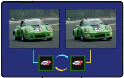 Технология MAXX, безусловно, очень интересна в качестве решения по увеличению производительности. Вся прелесть MAXX в аппаратной независимости, т.е. можно производить карты с любыми двумя графическими процессорами на борту, каждый из которых занимается формированием полного кадра изображения. Готовые кадры поочередно выводятся на экран монитора. Отметим, что каждый графический процессор может подряд выводить не более трех кадров (в случае тройной буферизации), зато в то время, пока один чип выводит готовые кадры, второй в это время создает следующие. Все управляется полностью программным путем. В принципе, нет препятствий на пути использования более двух графических процессоров на одной плате в рамках технологии MAXX, однако это нецелесообразно по нескольким причинам. Во-первых, максимальный прирост производительности достигается только при использовании двух чипов. Третий чип усложнит и удорожит систему, однако прирост производительности будет неоправданно низок. Во-вторых, могут возникнуть серьезные проблемы с электропитанием и тепловыделением.