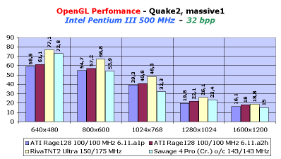 Результаты нас приятно удивили. Нет, ну согласитесь, когда фиксируешь увеличение производительности не на 2-3, а на 15-20 fps (в низких разрешениях), то это уже серьезно. Да, большая часть читателей, имеющих карты на Rage128, уже протестировала свои карты на новых драйверах, поэтому их возмущения вполне оправданы.