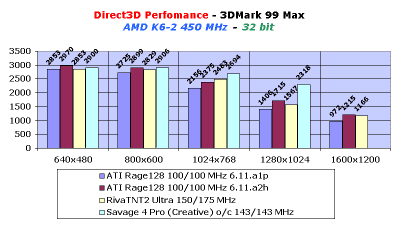 Все эти сообщения мы получали и изучали уже практически после запуска в производство обзора по Savage4 от Creative. И вот, буквально на следующий день после публикации стали приходить недовольные отклики от владельцев видеокарт на базе Rage128, которые возмущались низкими показателями у Rage128, которые у нас были в последнем обзоре. Когда я разбирал эти письма, ATI Rage Magnum уже стояла в компьютере, и шло новое тестирование на драйверах 6.11.A2H.