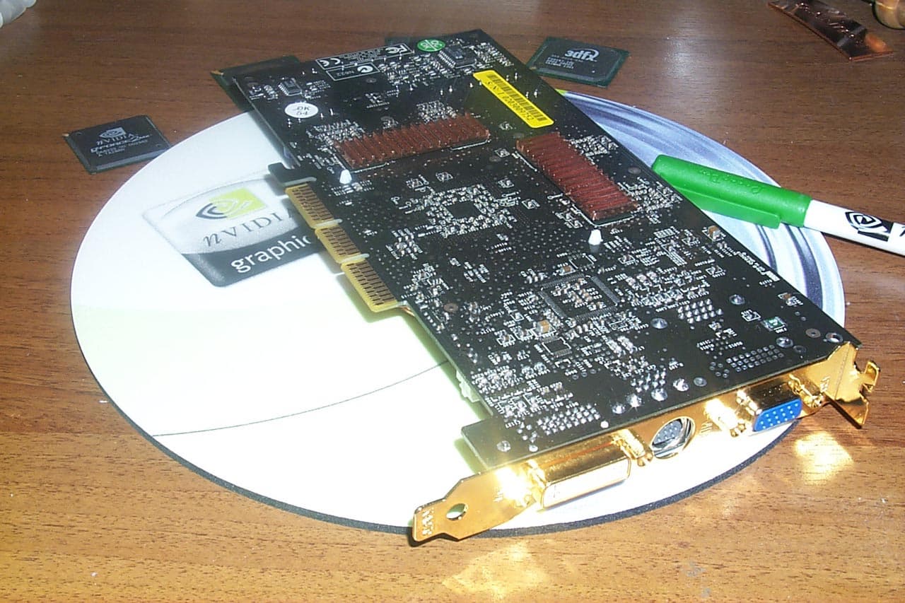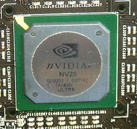 Впервые видеокарты комплектуются микросхемами с новым видом упаковки BGA. Возможно это, а может быть и полностью переработанный дизайн позволяют такой памяти спокойно работать на своих штатных частотах даже без охлаждения (например, на картах класса GeForce4 Ti 4400 3.6ns память функционирует на своей штатной частоте 275 МГц). Однако, по-видимому, сразу создать очень сложный дизайн PCB для использования столь высокоскоростной памяти очень сложно, поэтому инженеры NVIDIA решили подстраховаться и на GeForce4 Ti 4600 частота памяти была снижена более чем на 30 МГц от штатной. Чип работает на положенной ему частоте 300 МГц.