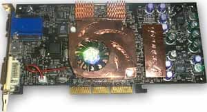 Конструкция самого радиатора стандартна для карт на базе GeForce4 Ti, представляет собой закрытую с двух сторон коробку, в которую вентилятор загоняет воздух, а последний наиболее сильным потоком проходит над GPU.