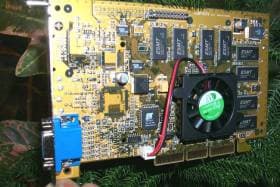 Дальнейший осмотр PCB показал, что видеокарта в остальном ничем не отличается от reference card. Плата имеет темно-желтый цвет, протестированный нами экземпляр имел пустые места под монтаж TV-out и вывода на цифровой LCD-монитор. Ни микросхем управления, ни самих гнезд этих устройств на нашем экземпляре карты не было. Chaintech в спецификации RI70, доступной на сайте фирмы, говорит об опциональности установки обоих дополнительных устройств, поэтому при покупке надо обращать внимание на упаковку (коробку), на которой указывается наличие на плате TV-out или вывода на LCD-мониторы (или того и другого вместе). Интересно отметить, что наклейка на задней стороне PCB свидетельствует о том, что модель RI70 была разработана и выпущена аж в октябре 1999 года, и только сейчас эти карты попали на рынок.