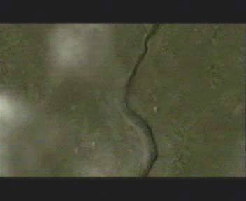 Итак, вернемся к нашим баранам. На этой картинке изображен первый эпизод с применением компьютерной графики (это — не 3D). Дело в том, что при съемках клипа у режиссера не было соответствующего оборудования для проведения съемок ландшафта с больших высот, но в клипе обязательно было необходимо как-то показать масштабность происходящего. Было принято решение создать компьютерный вариант ландшафта, чтобы потом, масштабируя его добиться эффекта взлета видеокамеры на большую высоту. Растр высокого разрешения был выполнен в программе Photoshop из кусочков ландшафтов, оцифрованных из существующего видеоматериала. Мы сделали несколько растровых изображений облаков, и затем выполнили анимацию из готовых компонентов в After Effect. Для увеличения эффекта реалистичности облака положили в несколько отдельных слоев и задали разную скорость передвижения для каждого слоя, этим мы добились получения эффекта объема.