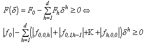 Здесь R — есть максимум функции возмущения на текущем интервале, а буквы Aij — коэффициенты квадратичной функции. Для функции возмущения проводится тест: