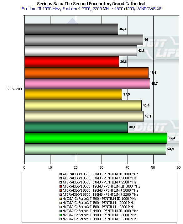 Здесь мы видим увеличение превосходства Ti 4400 над соперниками, а также поражение Ti 500 от RADEON 8500.