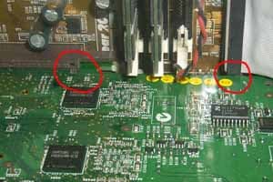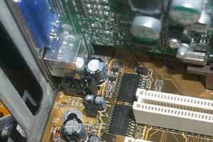 Как можно видеть, гнездо Tv-out упирается в конденсаторы на системной плате, и это не позволяет видеокарте нормально встать в AGP-слот. К тому же надо сказать, что это относится ко всем GeForce4 MX в сочетании с данной системной платой (наши 3DGiТоги за апрель это наглядно продемонстрируют).