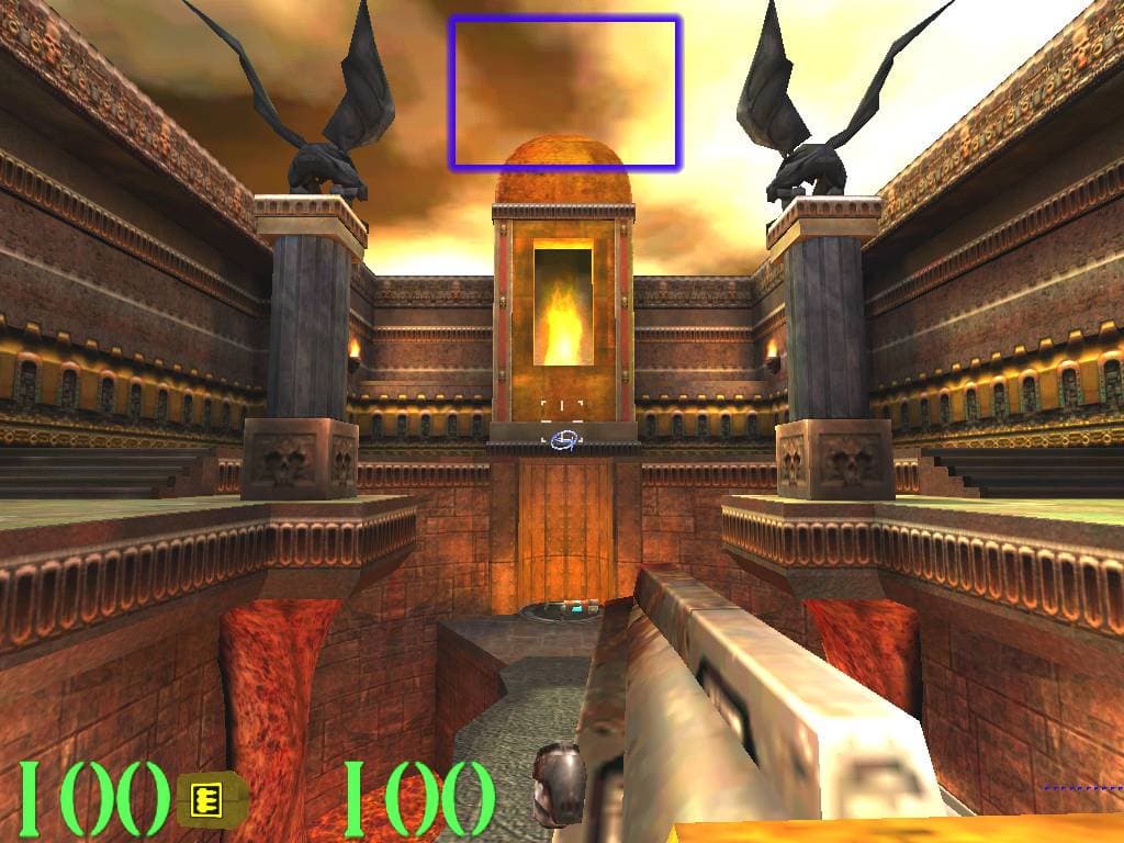 Перейдем к качеству 3D-графики. В продолжение разговора о поддержке больших текстур хочу сказать, что мы рассматривали работу Savage4 в специальных демо-уровнях к Unreal, где используются сжатые текстуры. Скриншоты ниже: