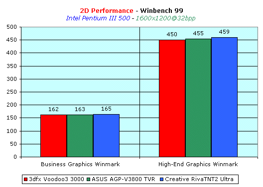 Начнем мы, конечно же, с 2D-графики. Исследование в этой области мы проводим с помощью WinBench 99, который нам показал следующие результаты в разрешении 1600х1200 при 32-битном цвете (процессор Intel Pentium III 500 MHz):