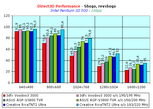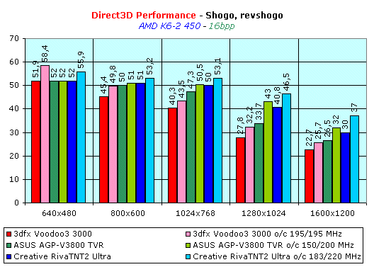 - Shogo — это также игровая программа, в которой запускается демо RevShogo (позволяющее после прогона сцены в 6100 фреймов подсчитать итог в FPS). Эта игра примечательна тем, что позволяет включать и отключать режим мультитекстурирования (по умолчанию он выключен) в Direct3D.