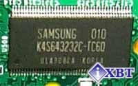 Чипы памяти произведены компанией Samsung и рассчитаны на рабочую частоту 166 МГц. На этой частоте память и функционирует.