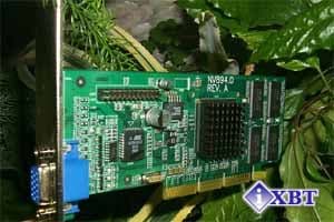 Карта имеет AGP2x/4x интерфейс, 32 Мб 6 ns SDR SDRAM памяти, размещенной в 4-х чипах, расположенных на лицевой стороне PCB: