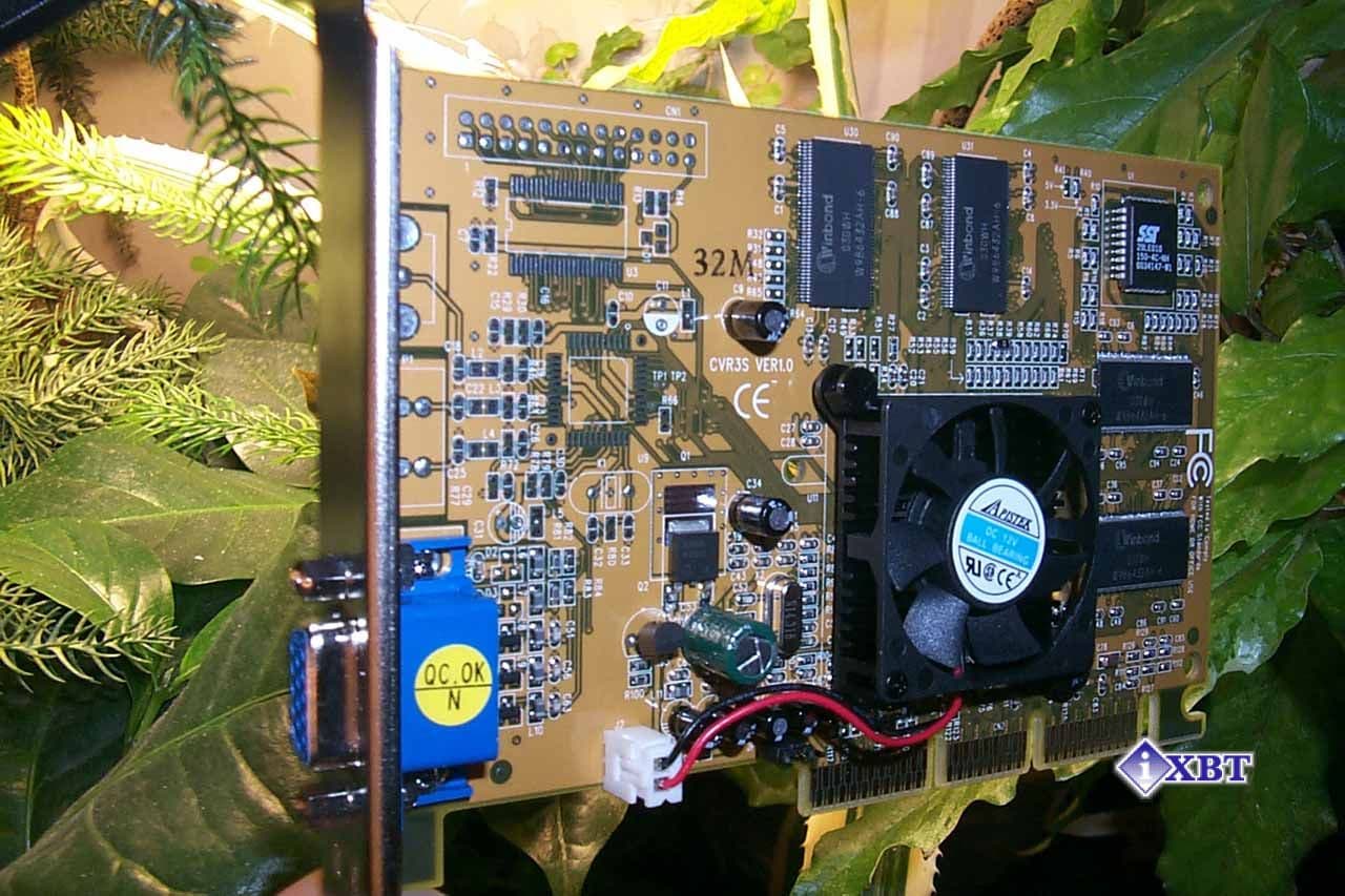 Карта имеет AGP x2/x4 интерфейс, 32 Мб 6 ns SDR SDRAM памяти, размещенной в 4-х микросхемах на лицевой стороне PCB.