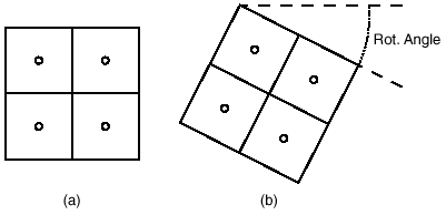 Второй тип SS AA известен как избыточная выборка с искаженной решеткой (Jittered Grid Super-Sampling, JGSS). JGSS аналогичен OGSS в том, что избыточные отсчеты хранятся попиксельно, но отличие между ними — в расположении отсчетов. В случае с OGSS решётка выборки параллельна и выровнена по горизонтальной и вертикальной осям. А в случае с JGSS решётка повернута относительно осей или искажена каким-либо другим образом. Пример решетки, используемой с JGSS, показана на рис. 3b. Существует несколько различных путей искажения решетки, мы сейчас рассмотрим два основных решения.