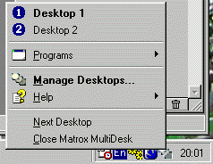 Как видно из картинки справа, в число сервисов PowerDesk входит еще и организация виртуальных рабочих столов. То есть помимо расширения десктопа на два монитора через DualHead вы можете иметь и еще "запасные" рабочие столы.