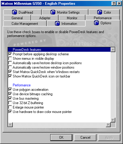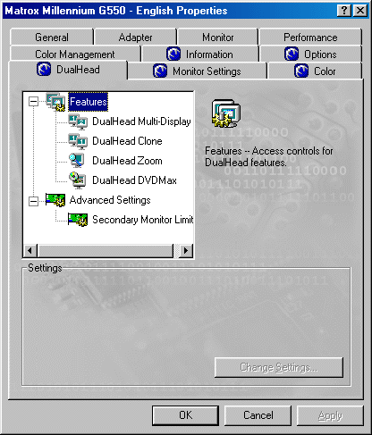 Должен отметить, что все вышеперечисленные возможности Matrox G550 доступны не только в линейке Windows 9x, но и в Windows 2000.