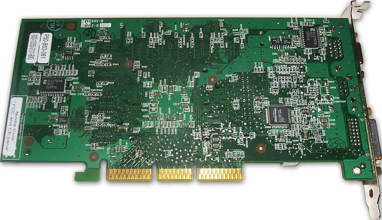 - Плата укомплектована TV-out и DVI-интерфейсом, что повышает спрос на нее со стороны желающих вывести изображение на телевизор (но только для имеющих технику с S-Video-входами) и на цифровой монитор.