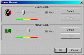 Эта закладка появляется только после внесения изменений в Registry, о которых говорилось выше. На этой странице мы можем разогнать видеокарту, повысив частоты на чипсете и памяти (до +25% от номинала). При этом надо иметь в виду, что если вы вдруг превысили частоты настолько, что и при загрузке Windows происходит зависание, то можно при загрузке GUI Windows удерживать клавишу Ctrl, что позволяет при инициализации драйверов сбросить частоты до номинальных значений.