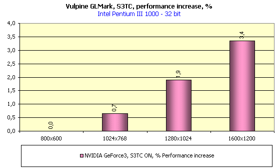 Перед тем, как перейти к анализу качества изображения, обеспечиваемого всеми тремя картами, принимающими участие в данном тестировании, уделим внимание технологии S3TC. Как я уже отметил выше, GLMark осуществляет автокомпрессию текстур при активизации S3TC. На примере Quake3 мы все помним, какими огрехами в этом случае страдают карты на чипах GeForce в 32-битном цвете. Посмотрим, что происходит в GLMark: