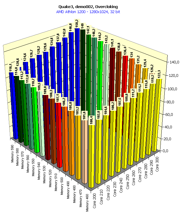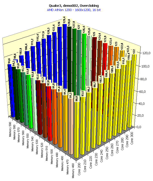 Исследование разгона ядра и памяти на примере Quake3, demo002
