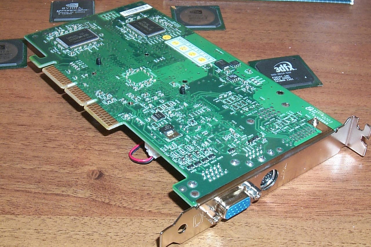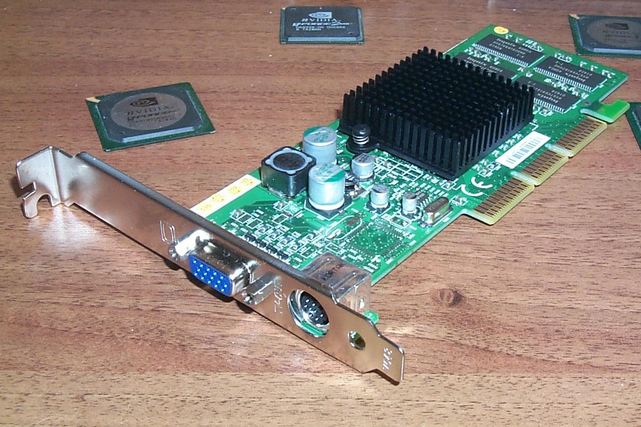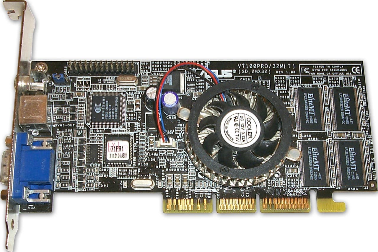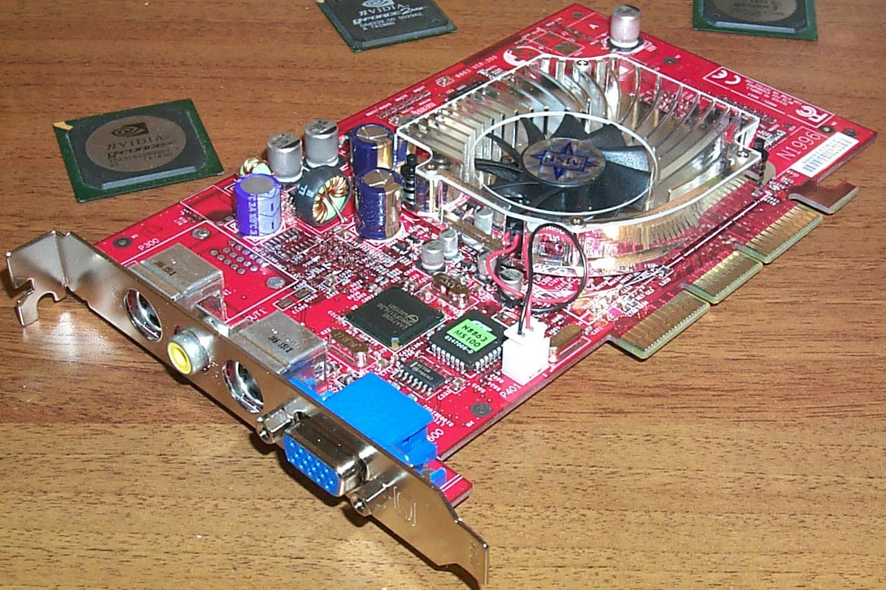 - GeForce 4 MX420 — 250 МГц ядро, 64 МБ 166 МГц 128 бит SDR памяти.