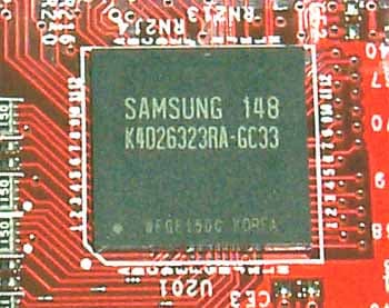 Данный экземпляр смог устойчиво работать на частотах 310/230 МГц, что, учитывая 5ns память, очень и очень неплохо.