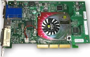 - GeForce 4 MX460 — 300 МГц ядро, 64 МБ 275(550) МГц 128 бит DDR памяти.