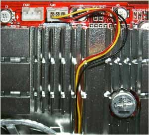 можно получить информацию о температурах, вольтаже и частотах вращения кулеров. Обратите внимание на то, что программа управляет не одним, а двумя кулерами (для охлаждения GPU и памяти). Наверху карты даже есть еще одно гнездо для подключения второго кулера (обратите еще внимание на то, что в радиаторе даже было высверлено отверстие под установленный на карте конденсатор):