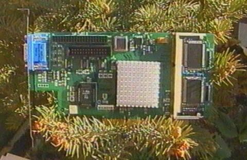 Эта видеокарта представляет собой так называемый sample, т.е. еще образец, выпущенный до серийного производства. Поэтому в эту карту был прошит новейший биос от Diamond. Как видно из снимка, на плате размещено только 4 мегабайта памяти, а еще 4 мегабайта размещены на модуле типа SODIMM. Однако в российском представительстве нам сообщили, что на серийно выпускаемых платах все 8 мегабайт будут распаяны на карте. Карта также грамотно выполнена, имеет возможности к расширению через дочернюю плату. Выгодно отличает эту карту наличие большого игольчатого радиатора (что впоследствии сказалось в положительную сторону). На 1 июня 1998 г. цена данной карты еще неизвестна.