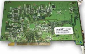 Поскольку видеокарта от Chaintech на базе GeForce2 Pro полностью повторяет эталонный дизайн (а мы в этом убедились давно, еще при рассмотрении этой карты), она и представляет reference card на базе этого чипа. И прекрасно видно, что дизайн карты от InnoVision полностью совпадает с эталонным, что и требовалось доказать. Отличительной особенностью Inno3D Tornado GeForce2 Ti является лишь нестандартный для этой компании цвет PCB зеленый.